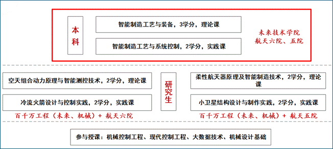 未来技术学院在智能制造领域,已逐步搭建起以《智能制造工艺与装备》《智能制造工艺与系统控制》等核心课程为支撑,将专业理论教学与工程实践有机结合,与航天五院、六院深度产教融合的微课程群。在研究生阶段,课程体系进一步拓展至空天组合动力、柔性航天器、小卫星结构设计等方向性课程及实践环节,形成了“理论—实践—工程应用”递进式的本硕博贯通人才培养模式。学院将持续推行本研贯通、项目驱动、校企协同、“课-项-赛”相结合的人才新范式,面向国家重大工程需求,不断提升学生的工程实践能力与创新创业能力,培养未来科技创新领军人才。