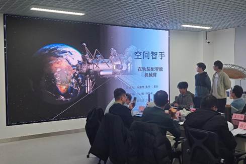 答辩会上,同学们分别围绕“面向大型空间桁架的碳纤维复材在轨织造”“面向在轨装配的智能机械臂控制”以及“智能机械手无损抓取的反馈控制”等三个科技项目进行了系统汇报。各项目团队全面展示了从研究背景、技术原理、方案设计到原理样机搭建与验证的全过程,并就专家提出的关键技术问题和工程可行性质询,进行了条理清晰、逻辑严谨的回应,充分展现了良好的工程素养与创新能力。